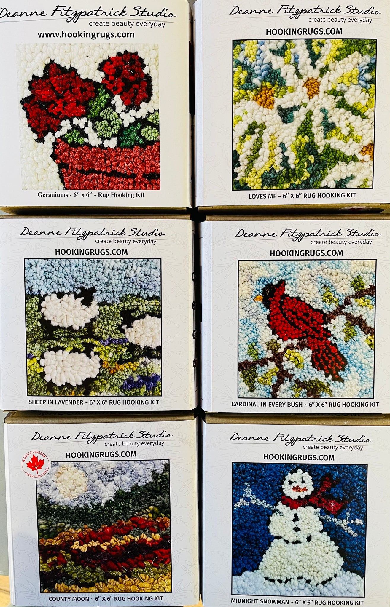 Workshop includes a 'Deanne Fitzpatrick Studio Kit', complete with all the materials, a hook and a 10" hoop (finished piece is 6"x6"). Pick your design from the options below!