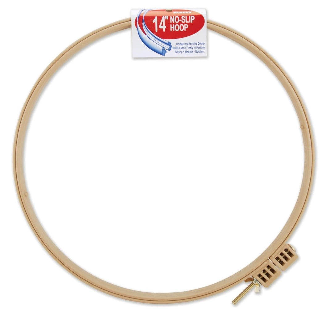 Frustrated with your current hoop but not wanting to invest in a gripper strip frame? Morgan no-slip hoops have a unique patented feature, a tongue and groove configuration, that holds the fabric securely between the inner and outer rings. This feature allows you to pull the fabric taught and keeps it in place while you hook or punch. Sizes available: 12” and 14”. Works for both traditional rug hooking or Oxford Punch Needle projects.